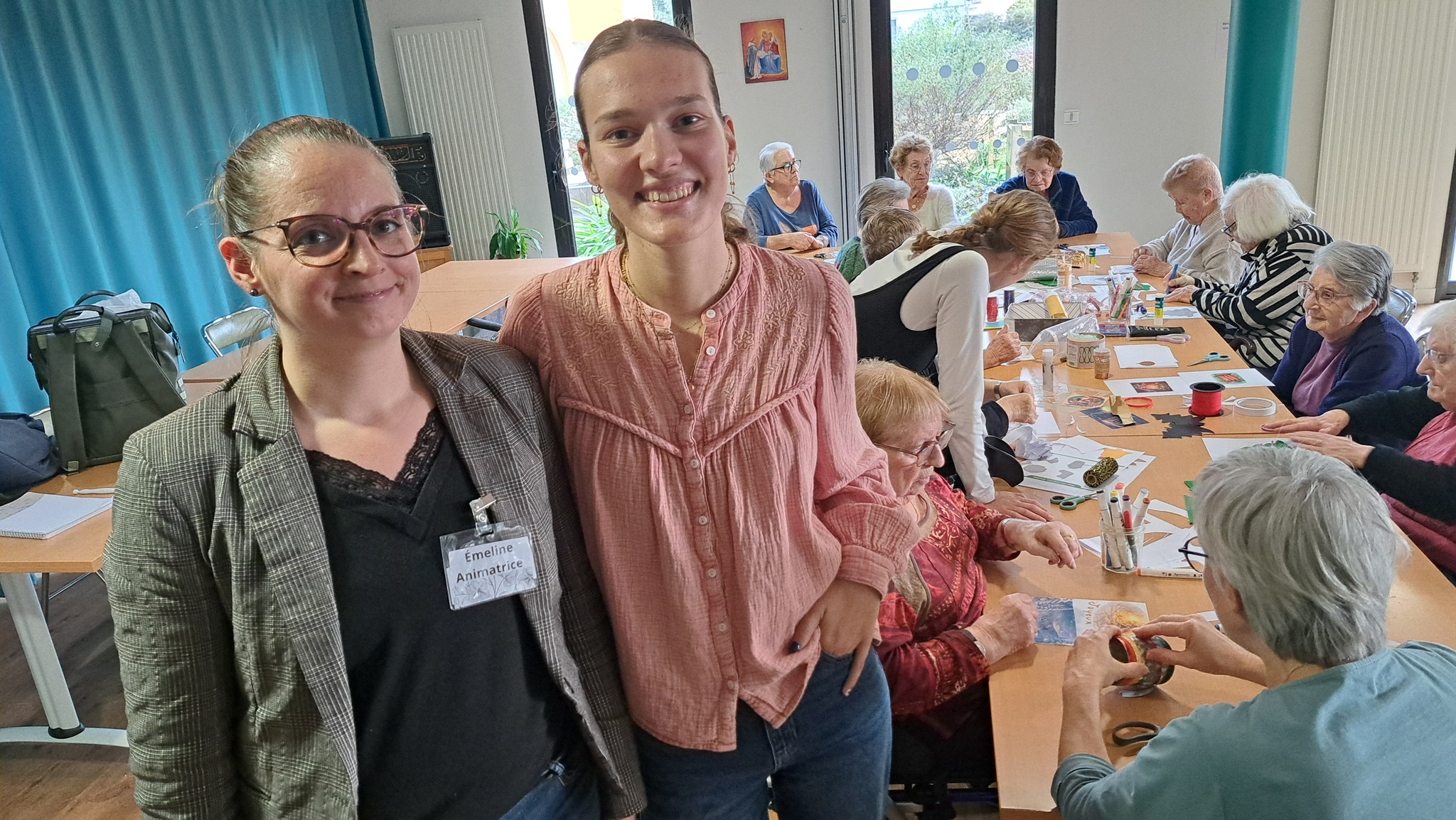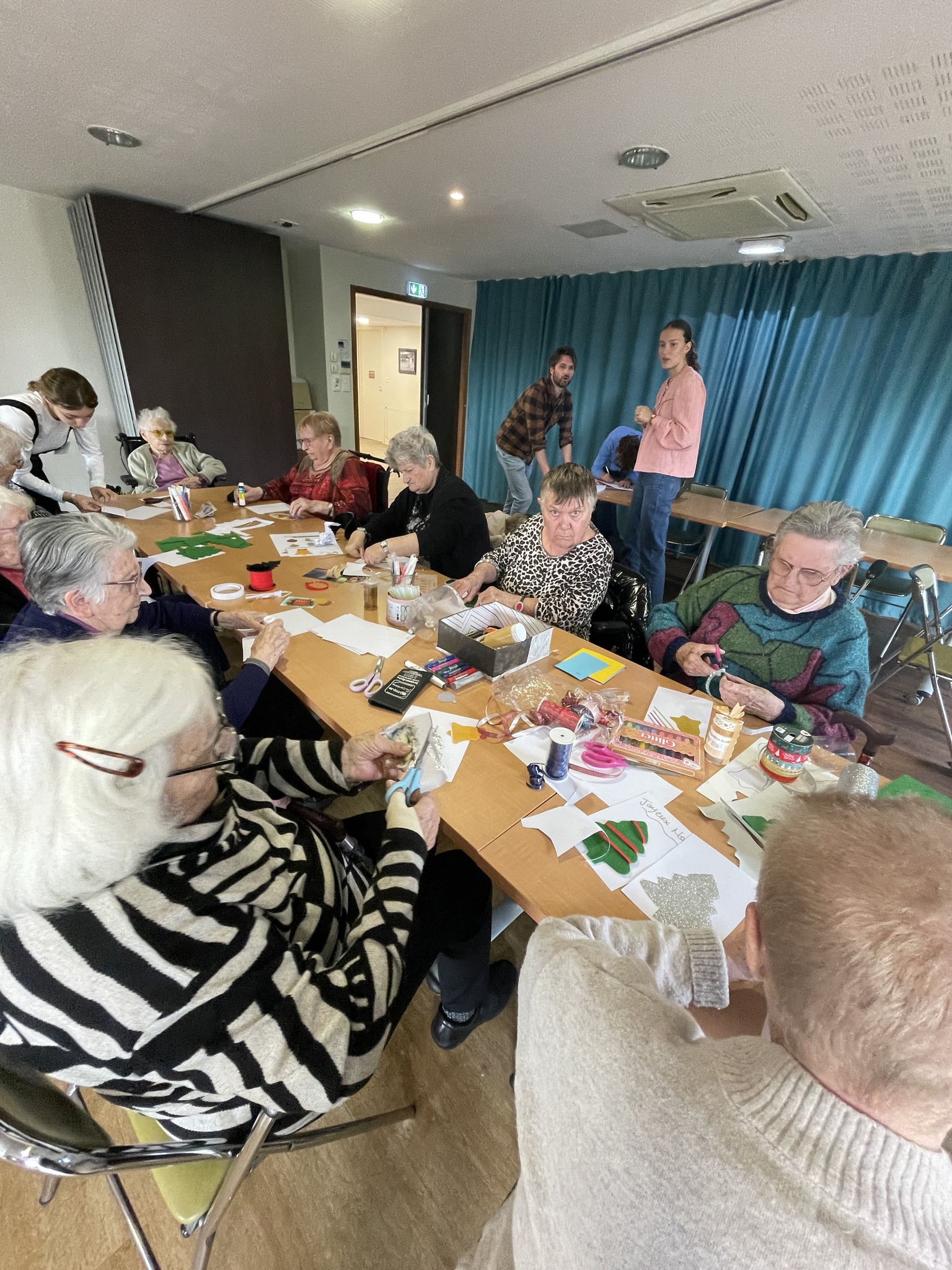 Au-delà des festivités, le maintien du lien avec l'extérieur reste une priorité. Grâce à un partenariat avec le CRT Sèvre et Vignoble, nous avons organisé une rencontre touchante entre nos résidents et des personnes âgées du département 44 accompagnées à domicile. Cet atelier de confection de cartes de vœux a permis de créer une véritable passerelle solidaire, prouvant que notre structure est un lieu de vie ouvert et chaleureux.