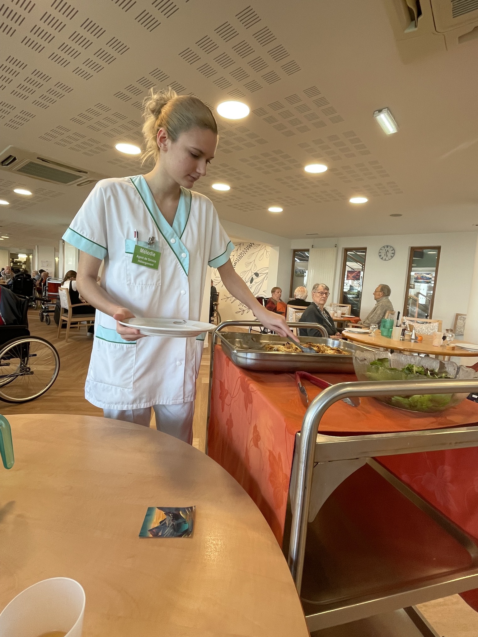 Les plaisirs de la table ont continué de ravir nos aînés lors d'un exceptionnel repas à thème consacré aux saveurs de la montagne. Dans une atmosphère immersive, l’équipe hôtelière et les soignants, dont certains costumés pour l'occasion, ont servi vin chaud, soupe à l'oignon, tartiflette et tarte aux myrtilles.